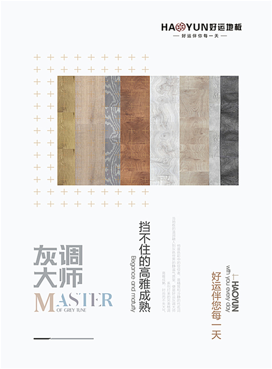 灰调大师,他是色彩中佼佼者,是精致和冷静的代名词。当地板的温润融入灰色世界的静谧气质里,便是好运灰调大师系列带来的另类格调,高雅成熟时尚而不失大气。